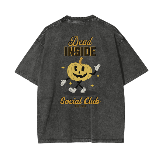 Dead Inside Social Club Acid Wash Oversized T-Shirt - Pumpkin Guy